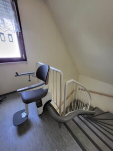 Mit unseren kurvigen Sitzliften gelangen Sie sicher von einer Etage in die nächste. Eine Montage ist  auf der Treppeninnen- oder Treppenaußenseite möglich.